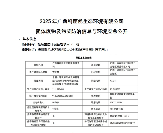 2025q广西科丽能生态环境有限公司固体废物及污染防治信息与环境应急公开